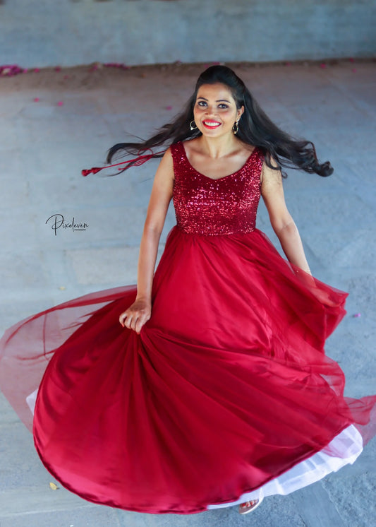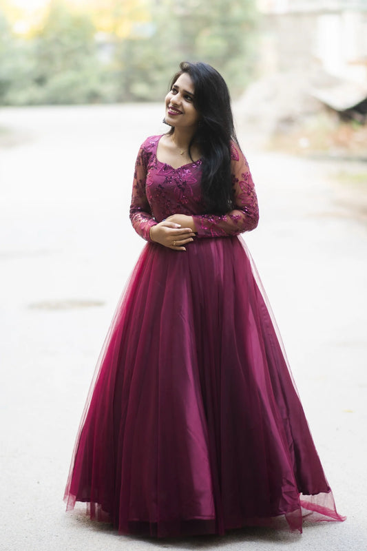 Maroon net longfrock