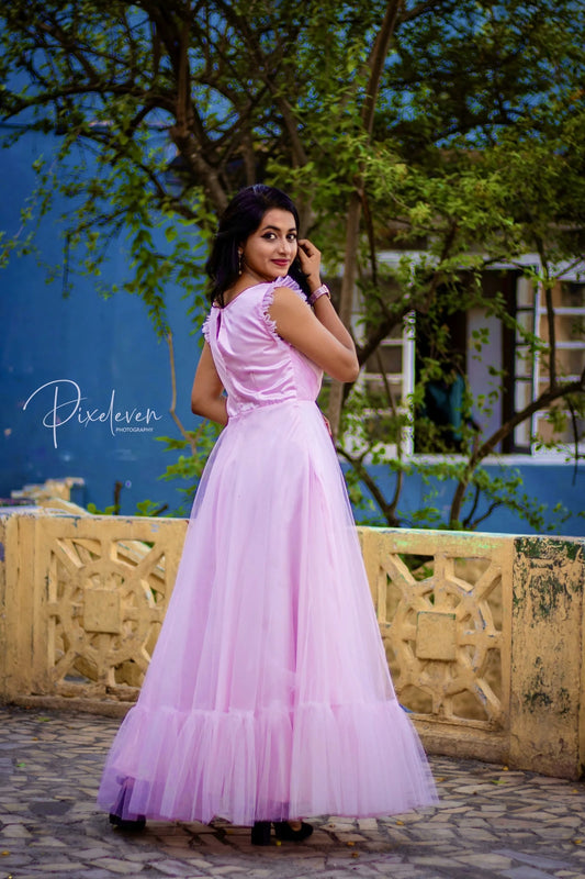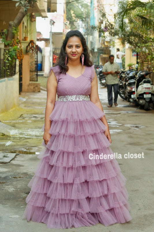 Mauve color Ruffle long frock