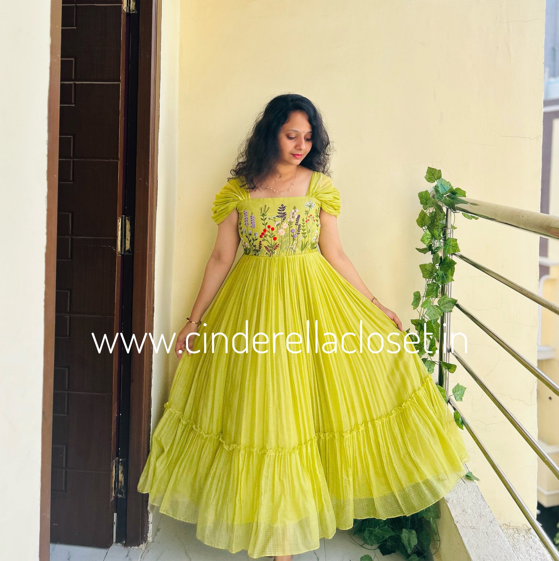 The perfect day out frock made from pretty and cute Kota cotton. Adorned with intricate thread embroidery, this dress is both stylish and comfortable. Feel confident and fashionable with this Frock .